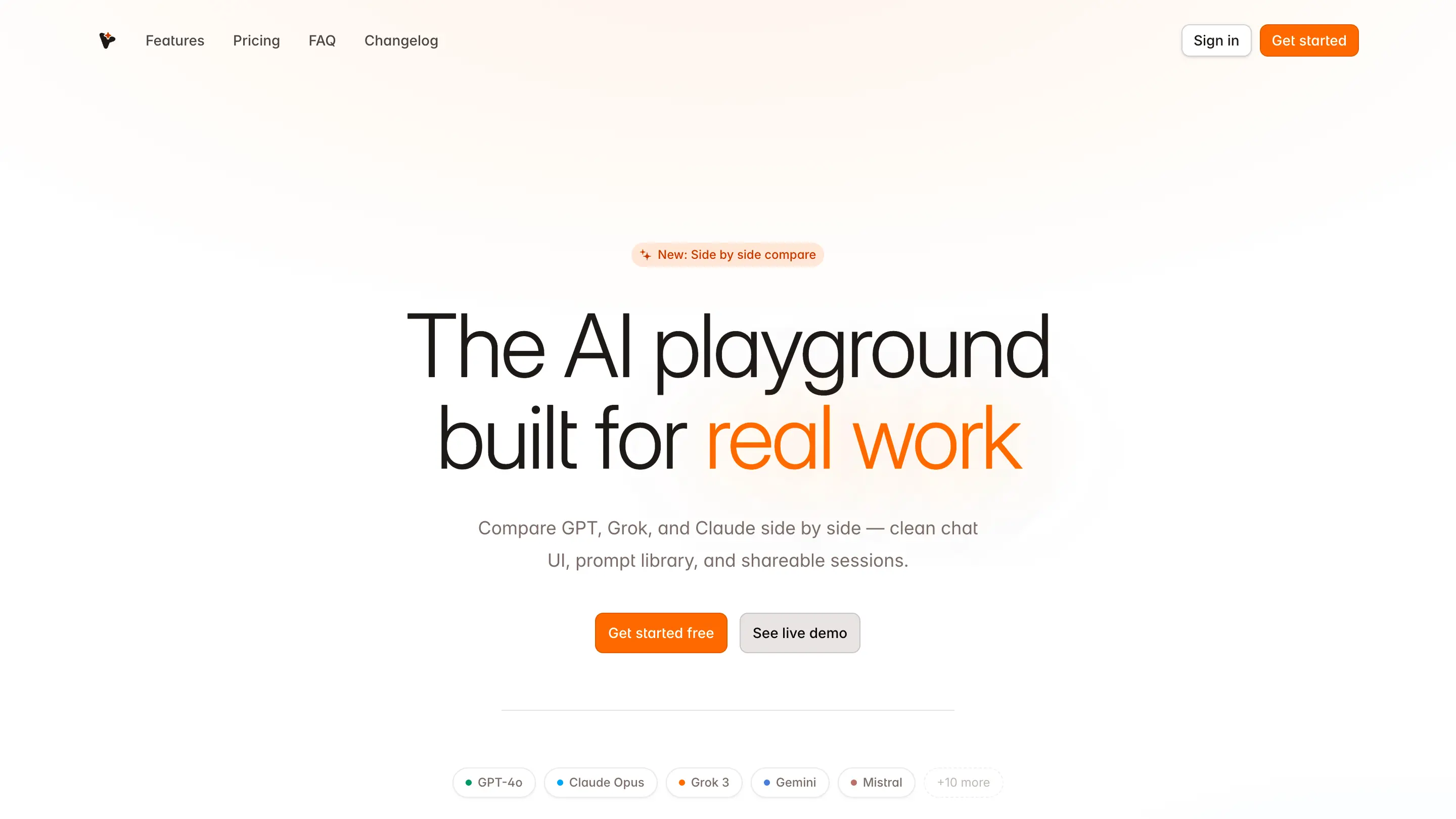 A clean, conversion focused landing page template for AI playground apps with hero, features, pricing, changelog, FAQ, and privacy pages, built with Tailwind and modern components.